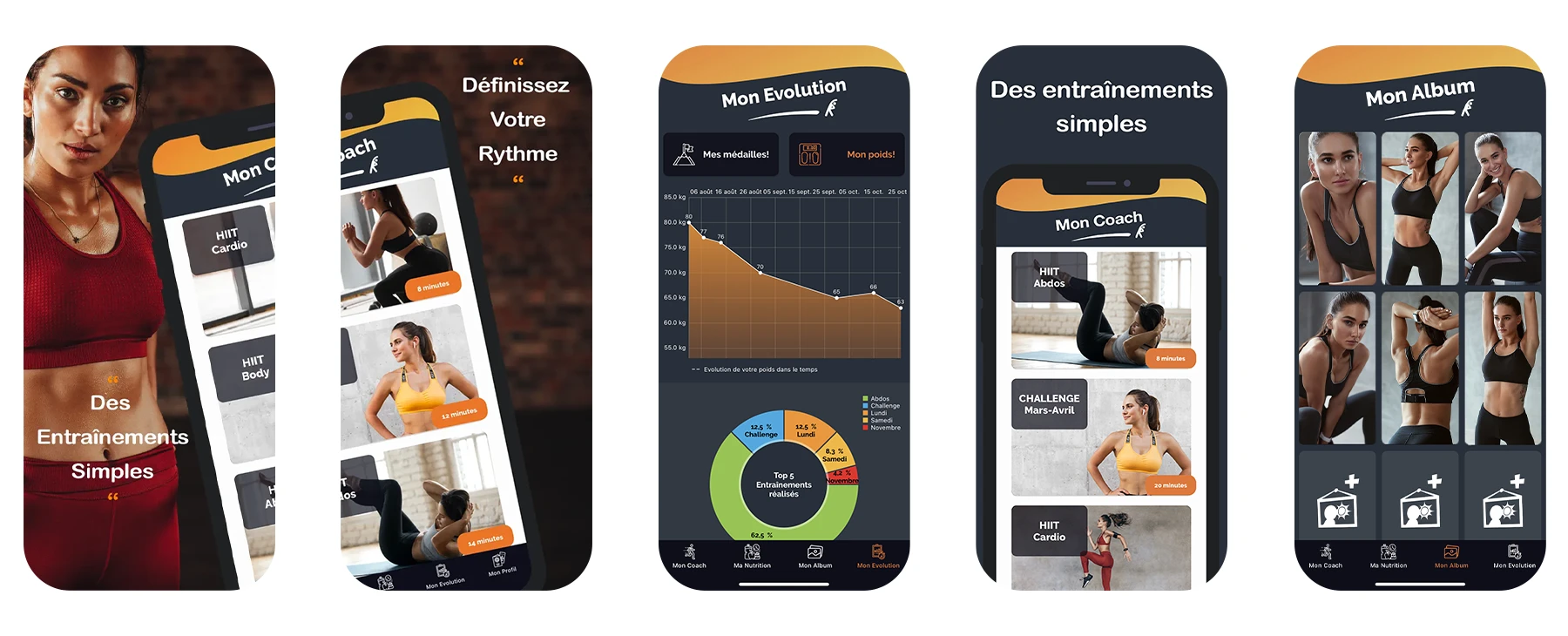 • Suivez votre évolution en photos, chaque séance réalisée permet de débloquer une photo.